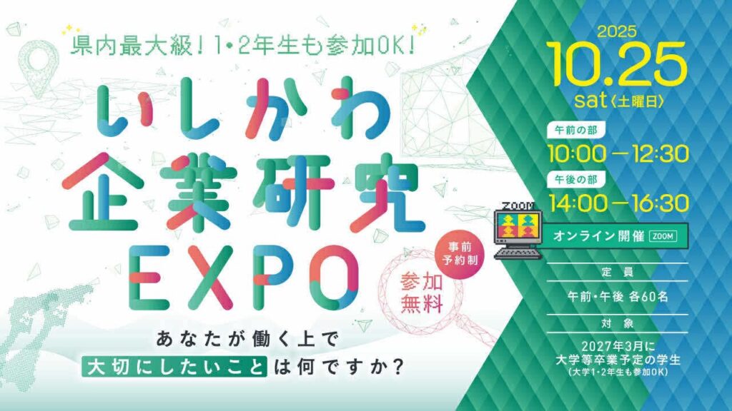 10月25日(土)開催「いしかわ企業EXPO」午後の部に出展します!